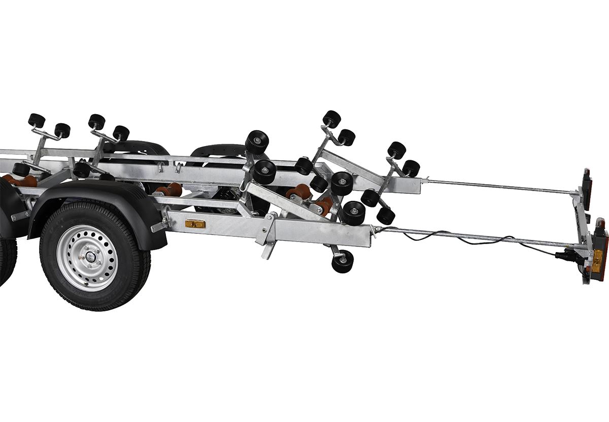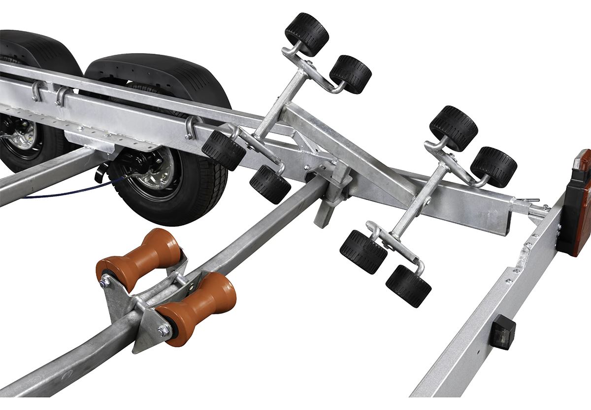 Variant 3502 BB – bromsad boggiebåttrailer med justerbara superstödrullar